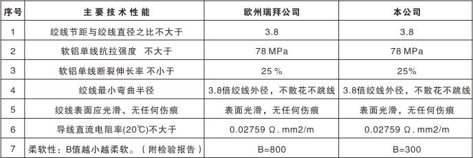 絞線節(jié)距很小,所以絞線柔軟性好。彎曲時結構穩(wěn)定,不變形,不松股裂縫或跳線,表面光滑圓整,起暈電壓高,電磁波影響小。